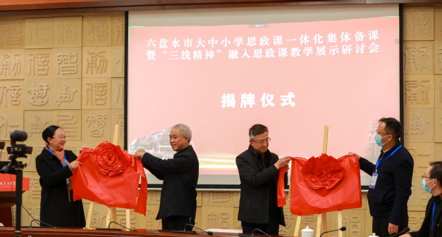 开幕式上,周斯弼、李葆青、李黎、蔡洪江等领导为“贵州省大中小学思政课一体化建设‘手拉手’集体备课中心六盘水分中心”“贵州省大中小学思政课一体化发展研究中心六盘水分中心”揭牌。
