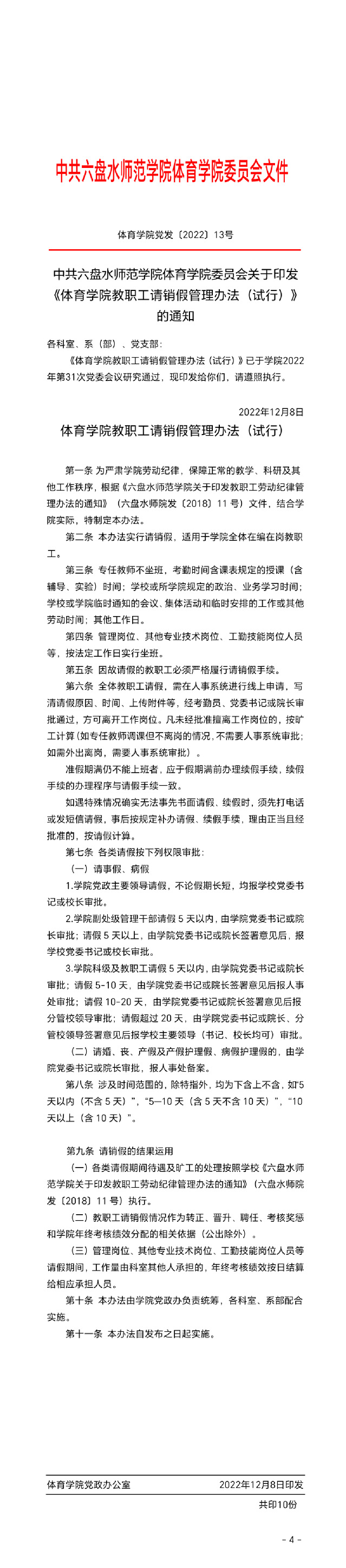 体育学院教职工请销假管理办法